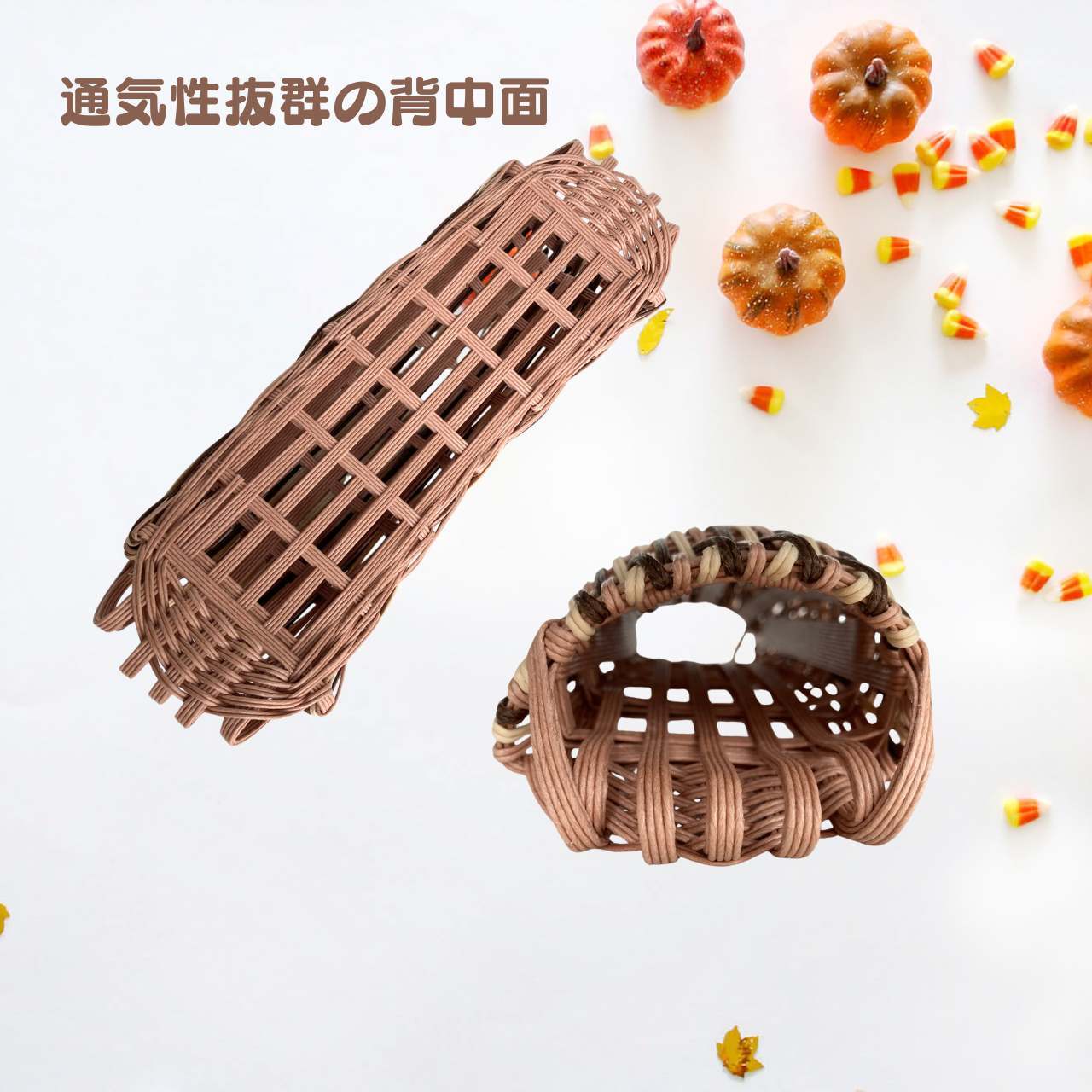 籠状に編まれているので通気性抜群、背中の蒸れを軽減します。