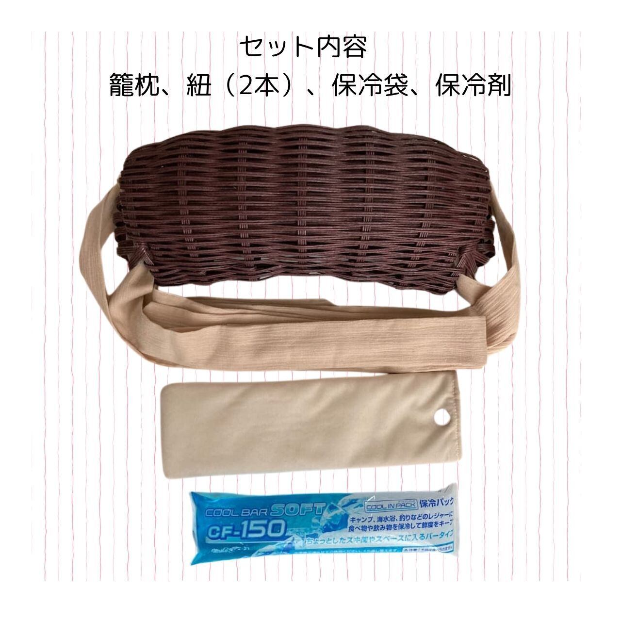 籠枕の中は二重構造の空洞設計で保冷剤が入れられます。